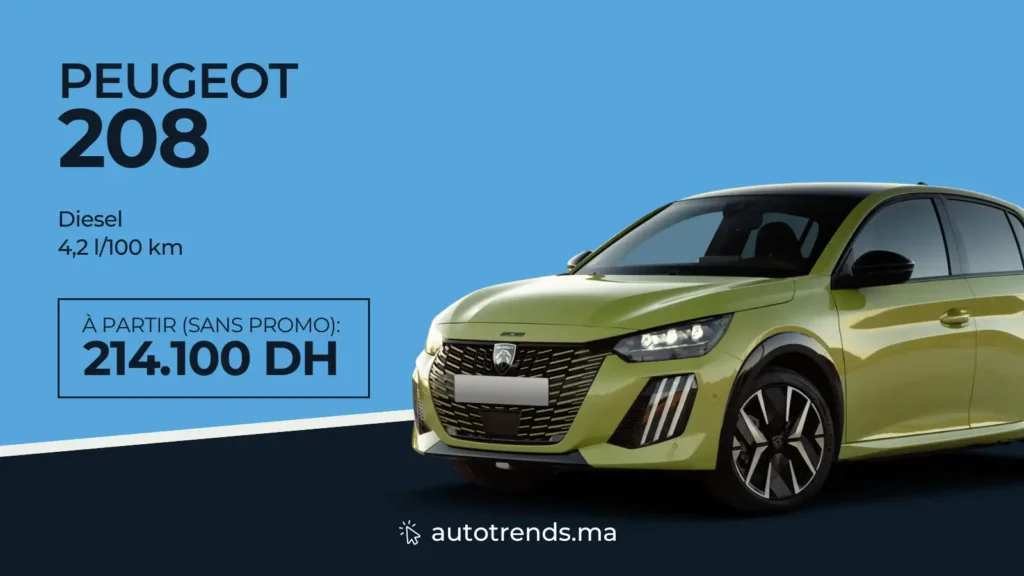 Or, pour les gros rouleurs effectuant des trajets interurbains fréquents, le diesel demeure une technologie de référence au Royaume. La Peugeot 208, équipée du bloc 1.5 BlueHDi de 100 ch, séduit par son équilibre avec 4,2 l/100 km. Ce modèle s’échange à partir de 214.100 DH sur le marché du neuf.